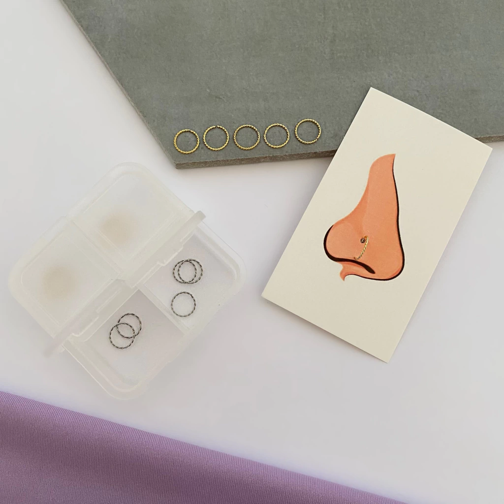 Detalhe minimalista que valoriza qualquer produção. O kit de argolas para piercing nostril é produzido em aço 316L, material hipoalergênico que garante resistência, conforto e brilho duradouro. Disponível no aço polido e no banho ouro 22K, é a escolha perfeita para quem busca versatilidade e estilo em uma peça leve e prática para perfuração.
