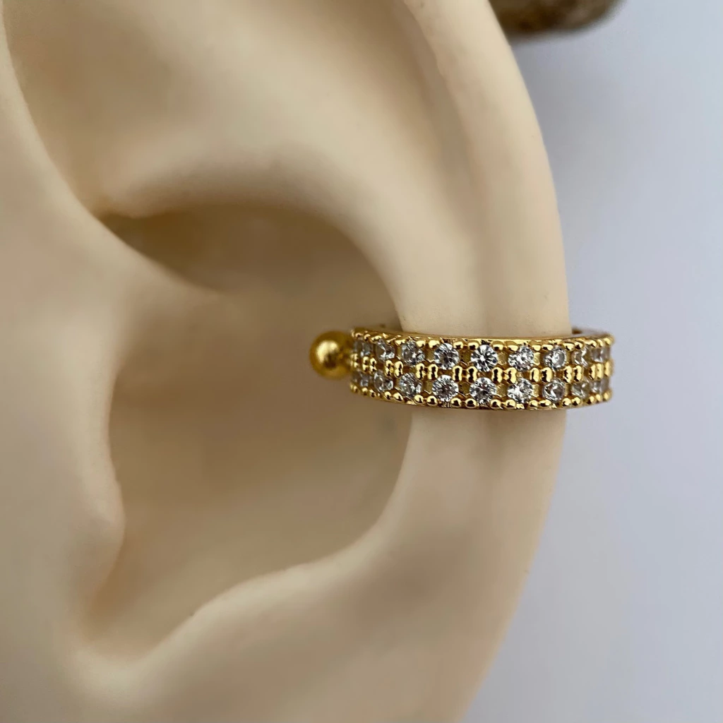 Eleve seu estilo com os piercings de conch da Carola Art Piercing, combinando design exclusivo, qualidade premium e conforto. Eles oferecem segurança para a perfuração, garantindo um encaixe perfeito. Banho resistente em ouro 22K, proporcionando um brilho sofisticado e acabamento impecável – perfeitos para um visual elegante após a cicatrização. Prateados com haste em aço cirúrgico 316L hipoalergênico e adornos em ródio branco, garantindo durabilidade, conforto e um toque atemporal.