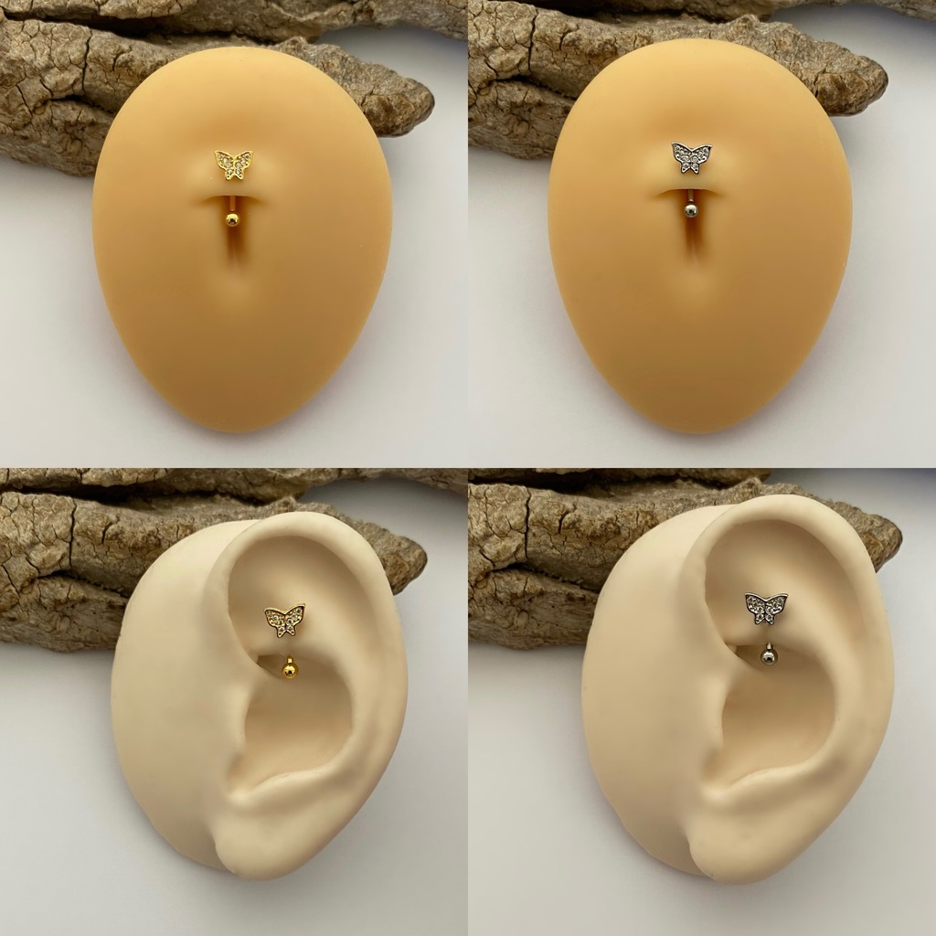Haste em aço 316L + adorno semijoia bom banho de ródio branco