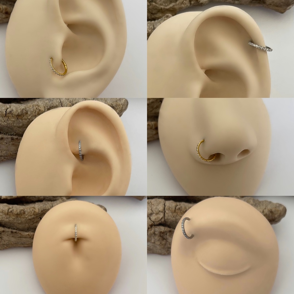 As argolas segmentadas com zircônias premium da Carola Art Piercing são a definição de brilho e elegância para sua perfuração. Confeccionadas em aço cirúrgico 316L com revestimento PVD gold, combinam resistência, conforto e acabamento impecável. O fecho segmentado oferece encaixe seguro e discreto, enquanto as zircônias cuidadosamente cravadas realçam a peça com um brilho intenso e duradouro. Pode molhar sem medo: não escurece, não perde a cor e mantém a beleza intacta por muito mais tempo.